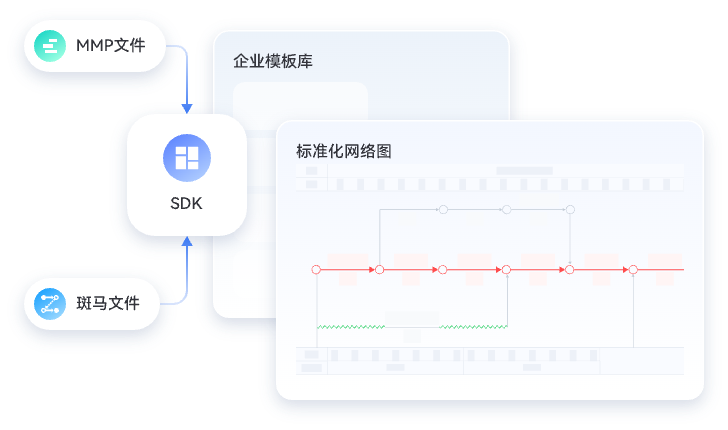 通过 SDK 导入 斑马、MPP等 文件或,自动匹配企业模板,生成标准化网络图